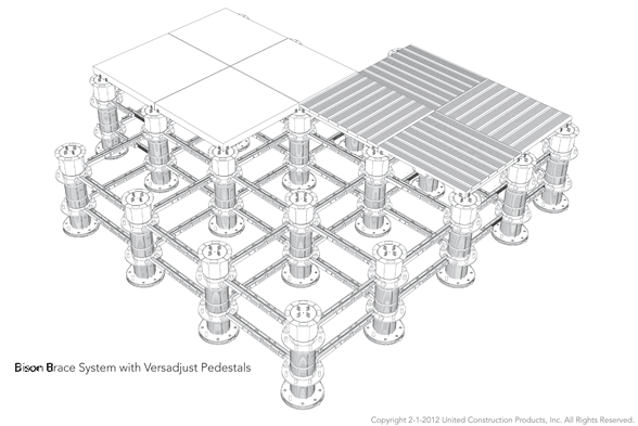 Works with traditional wood stringers Bison™ Versadjust© pedestals can also be installed using traditional joist and plank installation.